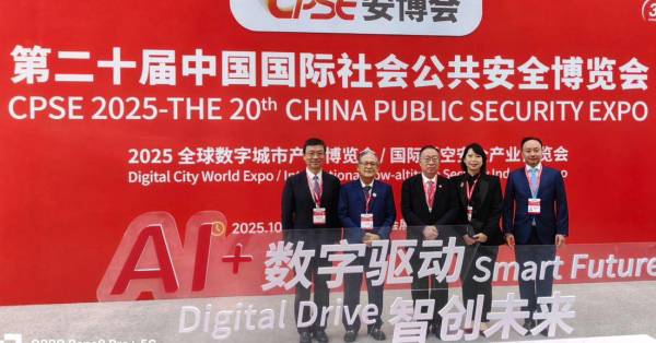 李锦贤在2025年世界数字城市大会,与中方代表留影;左起为刘昕、李锦贤、杨金才、林火莉及杨鹏。